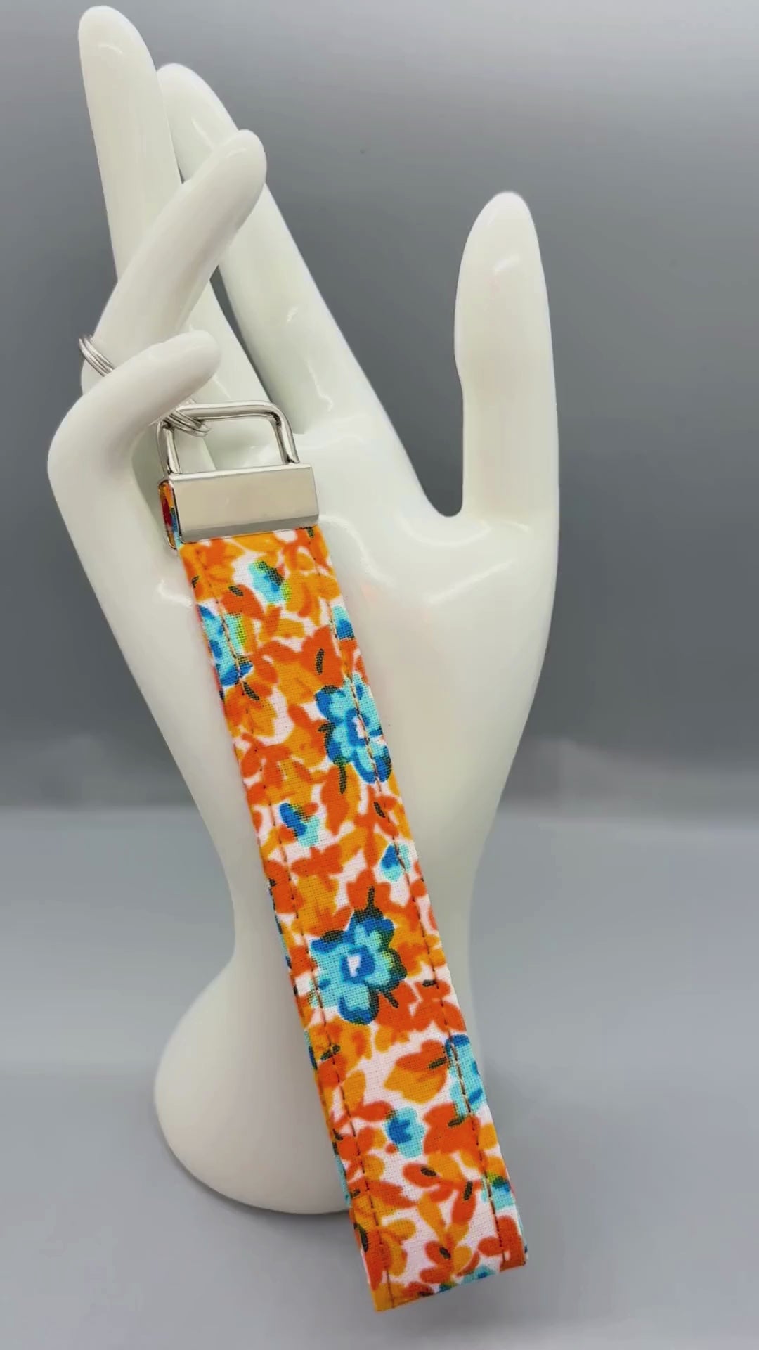 Bright Floral Fabric Wristlet Keychain – Orange & Blue Flower Key Fob | Handmade Key Holder | Gift for Her | Practical Teacher Gift